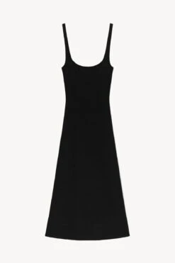 Mixed media mini dress with sweater knit body attached to a cotton poplin collar and high-low hem.